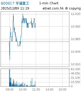 | 600817 | 宇通重工 | 11.000 | -0.040 | -0.362% | 5.42百万 | 25.5814 | 沪股通 | |