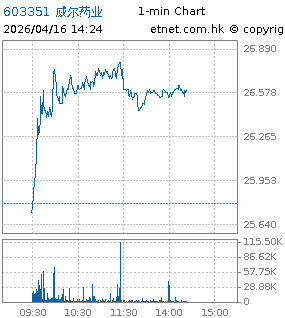 | 603351 | 威尔药业 | 26.590 | +0.800 | +3.102% | 3.31千万 | 24.6204 | 沪股通 | |