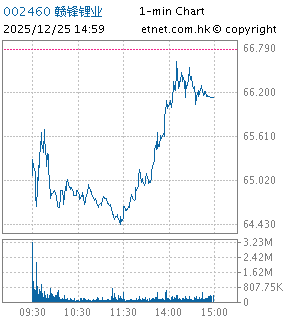 | 002460 | 赣锋锂业 | 66.790 | +0.430 | +0.648% | 41.00亿 | -- | 深股通 | |