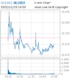 | 002961 | 瑞达期货 | 29.210 | +2.660 | +10.019% | 8.58亿 | 33.9651 | 深股通 | |