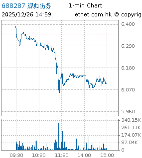 | 688287 | *ST观典防务 | 6.100 | -0.250 | -3.937% | 3.92千万 | -- | ||