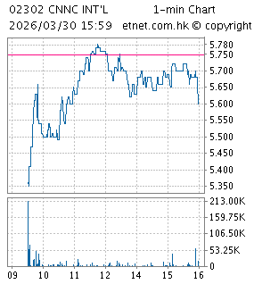 | 02302 | CNNC INT'L | 5.750 | +0.140 | +2.496% | 14.631 | 21,479 | ||