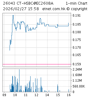 | 26043 | CT-HSBC@EC2608A | 188.880 | 12/08/2026 | 0.186 | +0.027 | +16.981% | 8.422M | 1.344M | |