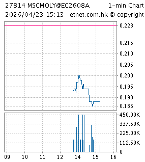 | 27617 | HSCMOLY@EC2609A | 23.350 | 14/09/2026 | 0.130 | -0.016 | -10.959% | 1.276M | 930,000 | |