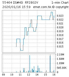 | 59742 | HS#HSI RP2804U | 27,550.000 | 27/04/2028 | 0.082 | +0.013 | +18.841% | 370.997M | 6.270M | |