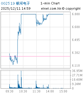 | 002519 | 银河电子 | 6.880 | +0.630 | +10.080% | 25.12亿 | -- | 深股通 | |