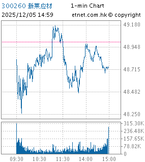 | 300260 | 新莱应材 | 54.750 | +0.430 | +0.792% | 1.44亿 | 97.7679 | 深股通 # | |