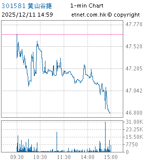 | 301581 | 黄山谷捷 | 47.660 | -0.180 | -0.376% | 1.89千万 | -- | ||