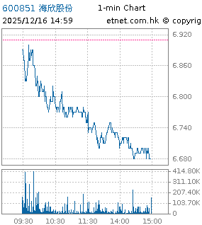 | 600851 | 海欣股份 | 6.680 | -0.230 | -3.329% | 6.69千万 | 53.44 | 沪股通 | |