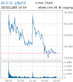 | 603131 | 上海沪工 | 29.740 | 0.000 | 0.000% | 20.26亿 | 743.5 | 沪股通 | |