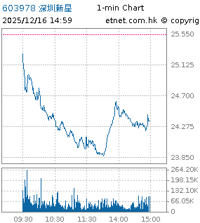 | 603978 | 深圳新星 | 24.350 | -1.200 | -4.697% | 2.80亿 | -- | ||