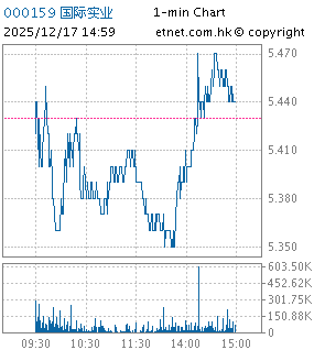 | 000159 | 國際實業 | 5.440 | +0.010 | +0.184% | 6.01千萬 | -- | ||