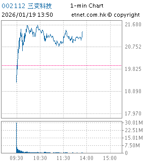| 002112 | 三變科技 | 20.910 | +0.940 | +4.707% | 20.99億 | 45.4565 | ||