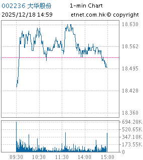 | 002236 | 大華股份 | 18.500 | -0.030 | -0.162% | 3.43億 | 20.5556 | 深股通 | |