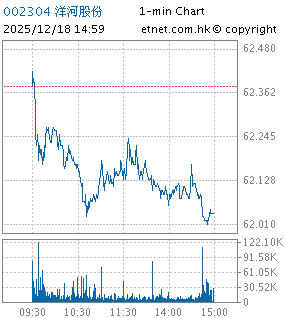 | 002304 | 洋河股份 | 62.120 | -0.260 | -0.417% | 1.69億 | 14.0229 | 深股通 | |