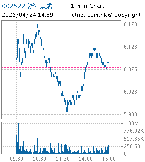 | 002522 | 浙江眾成 | 6.090 | +0.010 | +0.164% | 1.47億 | 101.5 | 深股通 | |