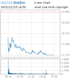 | 002725 | 躍岭股份 | 17.300 | -1.780 | -9.329% | 7.91億 | 93.8178 | ||