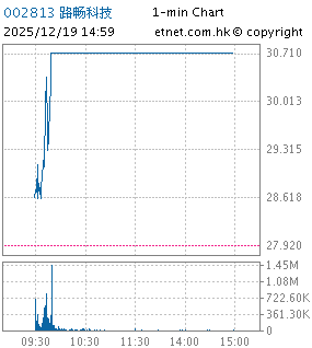 | 002813 | 路暢科技 | 30.710 | +2.790 | +9.993% | 2.71億 | -- | ||