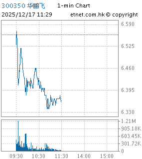 | 300350 | 華鵬飛 | 6.650 | -0.320 | -4.591% | 1.73億 | 221.6667 | ||