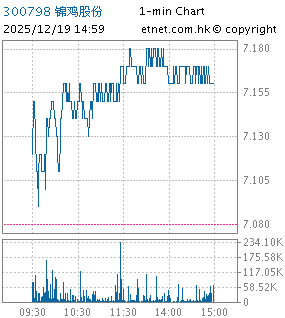 | 300798 | 錦雞股份 | 7.160 | +0.080 | +1.130% | 3.53千萬 | 591.7355 | ||