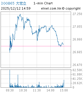 | 300865 | 大宏立 | 26.790 | +0.030 | +0.112% | 2.75千萬 | -- | ||