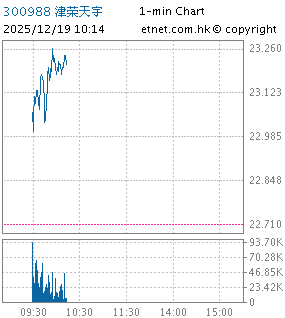| 300988 | 津榮天宇 | 22.710 | +0.180 | +0.799% | 6.26千萬 | 42.0556 | ||