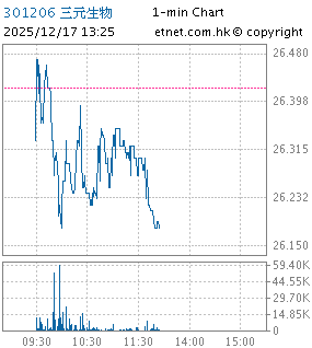 | 301206 | 三元生物 | 26.330 | -0.090 | -0.341% | 8.73百萬 | 50.6346 | 深股通 # | |