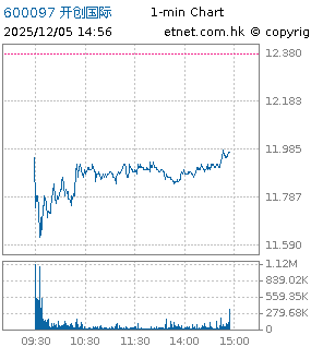 | 600097 | 開創國際 | 11.890 | -0.490 | -3.958% | 1.77億 | 47.56 | 滬股通 | |