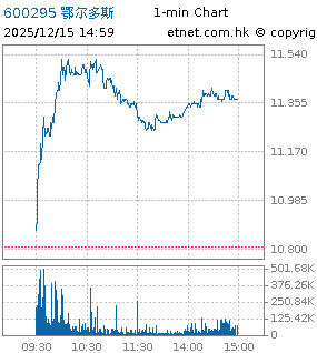 | 600295 | 鄂爾多斯 | 11.390 | +0.020 | +0.176% | 1.39億 | 17.2576 | 滬股通 | |