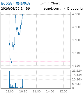 | 600594 | 益佰製藥 | 4.800 | +0.440 | +10.092% | 7.32億 | -- | 滬股通 | |