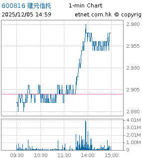 | 600816 | 建元信託 | 2.970 | +0.070 | +2.414% | 1.96億 | 550 | 滬股通 | |