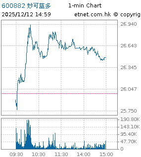 | 600882 | 妙可藍多 | 26.480 | +0.490 | +1.885% | 1.60億 | 117.1681 | 滬股通 | |