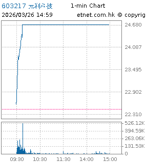603217元利科技升24.680+2.240+9.982%9.40千萬24.4356滬股通