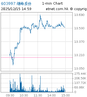 | 603997 | 繼峰股份 | 13.540 | +0.360 | +2.731% | 1.23億 | -- | 滬股通 | |