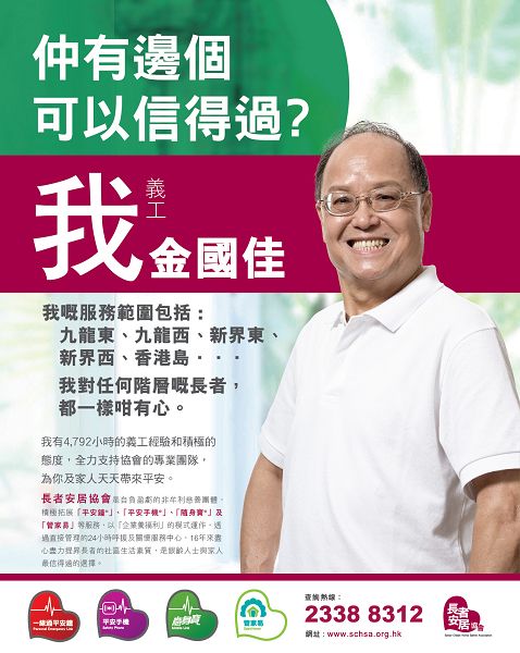 義工金國佳先生,為協會服務長者超過10年,協助送贈物資作探訪及電話慰問,更不時參與文書工作。金先生連獲義工參與獎項,是協會「卓越服務金獎」(註)的得獎義工。