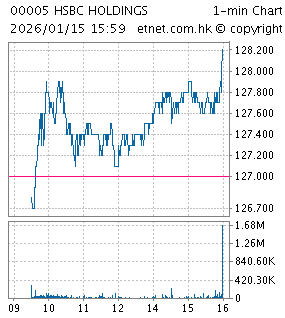 15/01/2026 09:55 《異動股》滙控微升0﹒5%,傳擬出售新加坡滙豐人壽業務