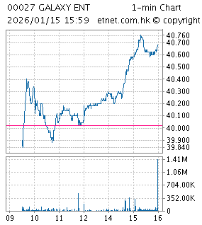 | 00027 | 銀河娛樂 | 40.680 | +0.660 | +1.649% | 20.310 | 337,501 | ||