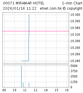 | 00071 | 美麗華酒店 | 10.330 | -0.080 | -0.768% | 9.565 | 25,699 | ||