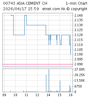 | 00743 | 亞洲水泥(中國) | 2.100 | +0.010 | +0.478% | 33.458 | 3,114 | ||