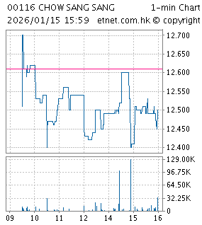 | 00116 | 周生生 | 12.500 | -0.110 | -0.872% | 10.495 | 36,687 | ||