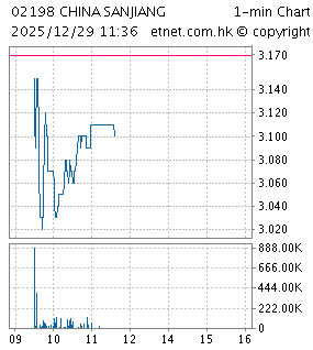 | 02198 | 中國三江化工 | 3.170 | +0.120 | +3.934% | 6.250 | 35,613 | ||