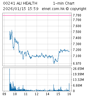 15/01/2026 13:27 《異動股》阿里健康回吐近9%,昨日炒作獨家首發新藥爆升近1…