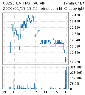 | 00293 | 國泰航空 | 12.290 | -0.060 | -0.486% | 8.237 | 45,362 | ||