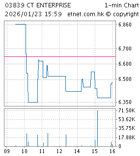 | 03839 | 正大企業國際 | 6.480 | -0.170 | -2.556% | 18.842 | 24,710 | ||