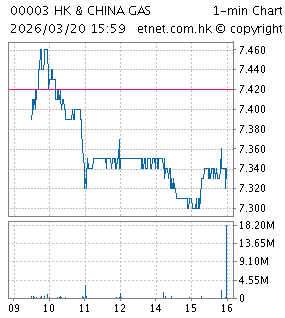 | 00003 | 香港中華煤氣 | 7.340 | -0.080 | -1.078% | 23.987 | 128,807 | ||