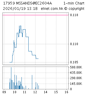 | 17800 | 金沙法興六四購A | 19.300 | 23/04/2026 | 0.111 | -0.014 | -11.200% | 1.20百萬 | 3.21百萬 | |