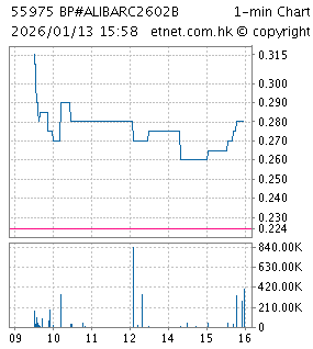 | 20669 | 阿里摩利六四購B | 173.430 | 22/04/2026 | 0.101 | +0.024 | +31.169% | 1.60千萬 | 2.26千萬 |