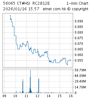 | 56106 | 恒指瑞銀八九牛B | 26,877.000 | 28/09/2028 | 0.010 | 0.000 | 0.000% | 4.03億 | 0.00 | |