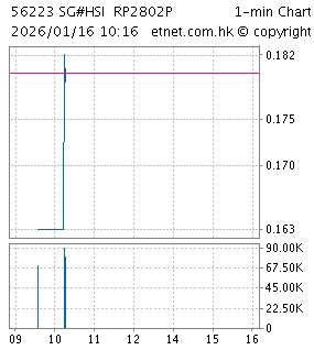 | 20528 | 恒指瑞銀六三沽A | 25,000.000 | 30/03/2026 | 0.048 | +0.003 | +6.667% | 1.10千萬 | 5.77千萬 | |