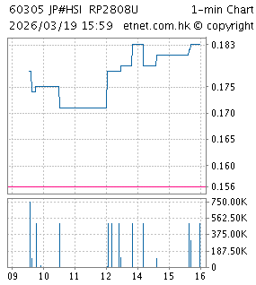 | 60311 | 恒指瑞銀八乙熊W | 25,738.000 | 28/12/2028 | 0.040 | 0.000 | 0.000% | 3.48億 | 0.00 | |